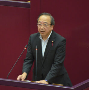 日本共産党の中山郁美市議は、2025年9月3日に福岡市議会の議案質疑に立ち、8月の豪雨により発生した東区香椎川周辺での洪水被害をめぐって高島市長がSNSで誤った発信をした問題についてただしました。また、学校給食費無償化にともなってアレルギーで給食を食べられない子どもの世帯にのみ給食費相当額が給付されることについて、不登校や宗教上の理由で給食を食べられない子どもの世帯にも給付するよう求めました。